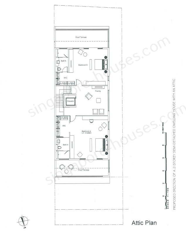 Attic: 2 bedrooms ensuite, 1 family area, front and back roof terrace